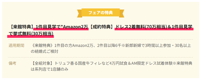 結婚式サイトのキャンペーンにエントリーしてから見学に行くと、キャンペーンが適用されます。