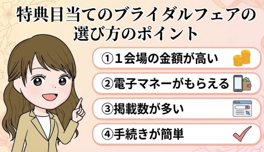 特典目当てのブライダルフェアの選び方のポイント