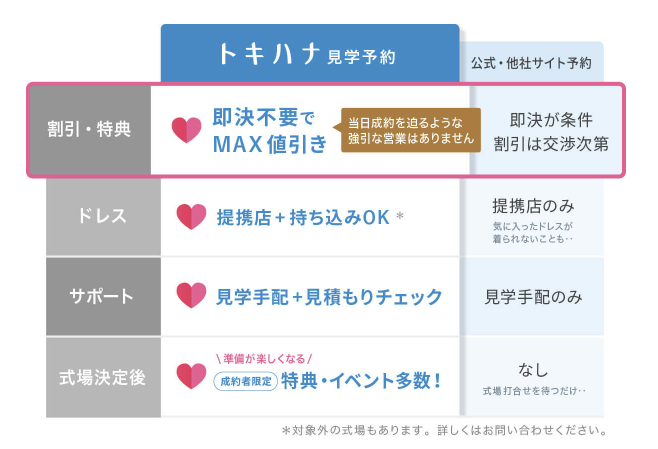 サービス内容 | 結婚式場の見学予約サイト。持込可能な式場数はNo.1。 |