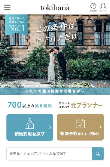 トキハナのサイトは使いやすく、情報も見やすいのですが、いざ探してみると提携している式場が限られていて、選べる幅が狭いです。他と比べて掲載式場数が圧倒的に少なく感じました。結局ゼクシィを使いました。
