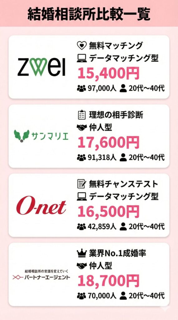 結婚相談所の比較については別の記事で詳しく解説しています。